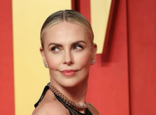 In a bold fashion statement, Theron donned a glittering black sheer ensemble that turned heads and sparked discussions. The racerback dress with ruffle detail by the waist played